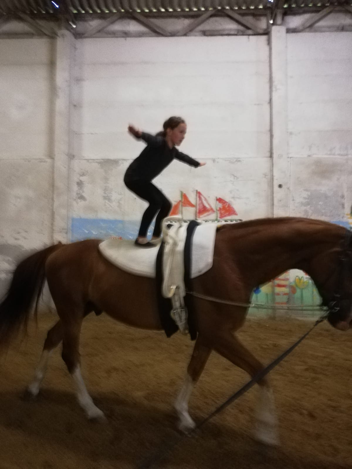 Durch das Turnen auf dem Pferd wird außerdem das Körper- und Gleichgewichtsgefühl geschult, Kräftigungs- und Dehnübungen sowie regelmäßiges Turnhallentraining mit akrobatischen Elementen und Spielen vervollständigen das Grundlagentraining.