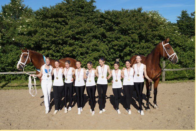 Nachwuchsgruppe auf Turnieren mit Schulpferd Simon
